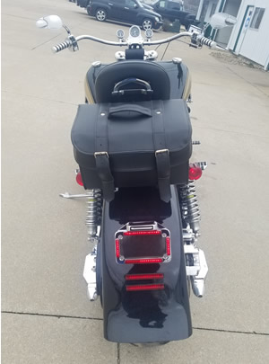Passenger sissy bar with luggage rack and tour pack.
