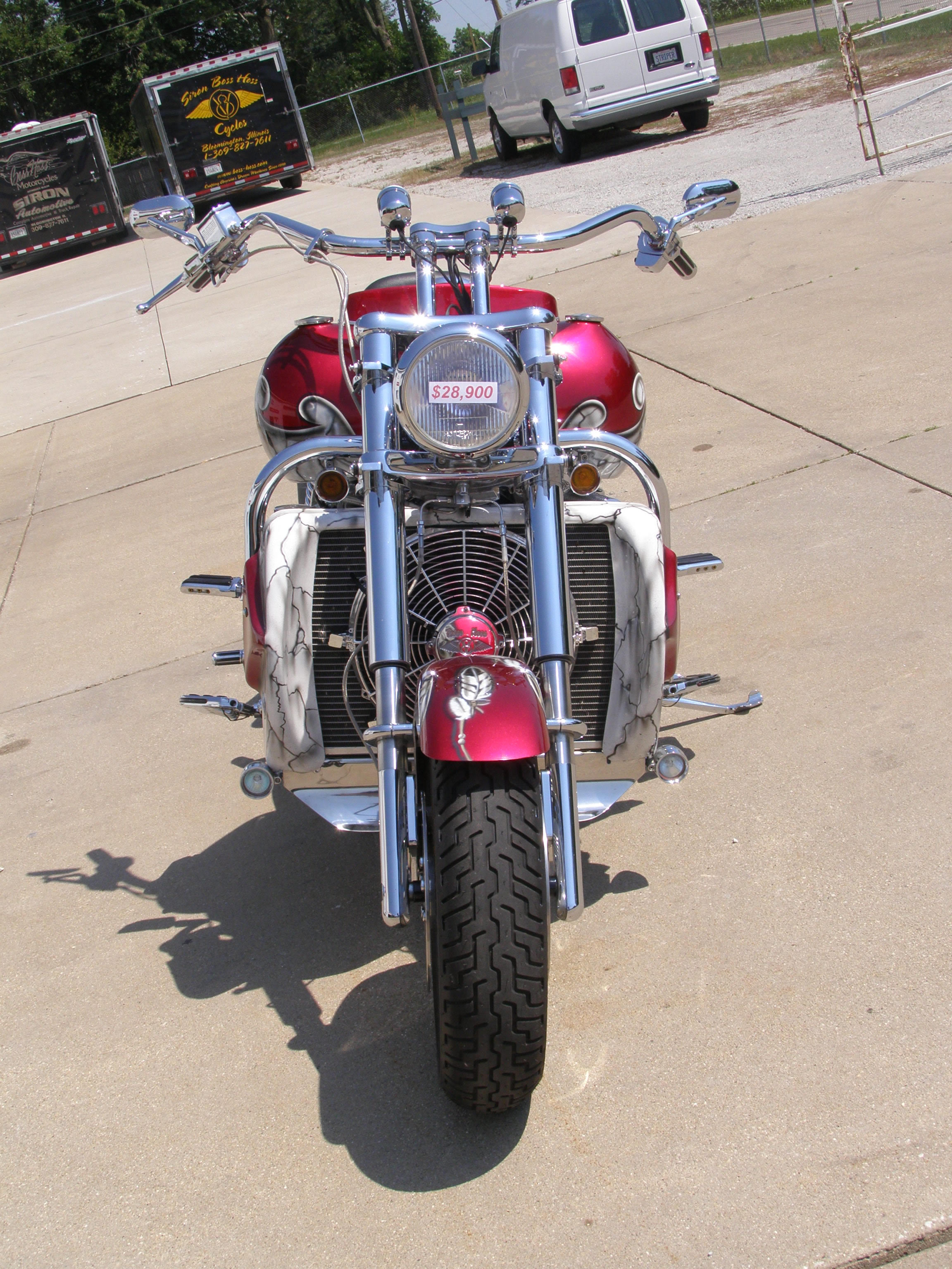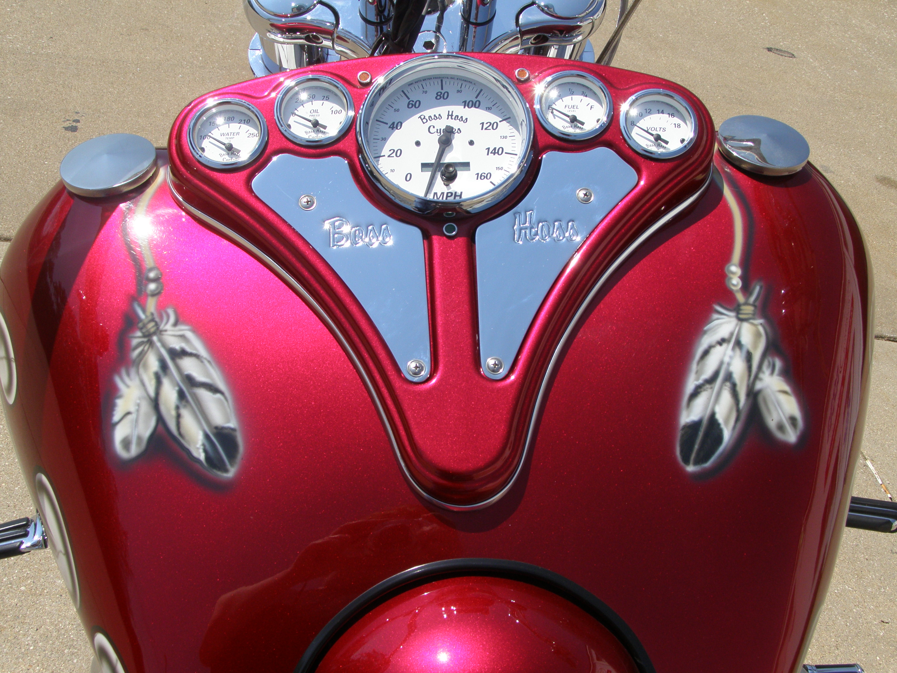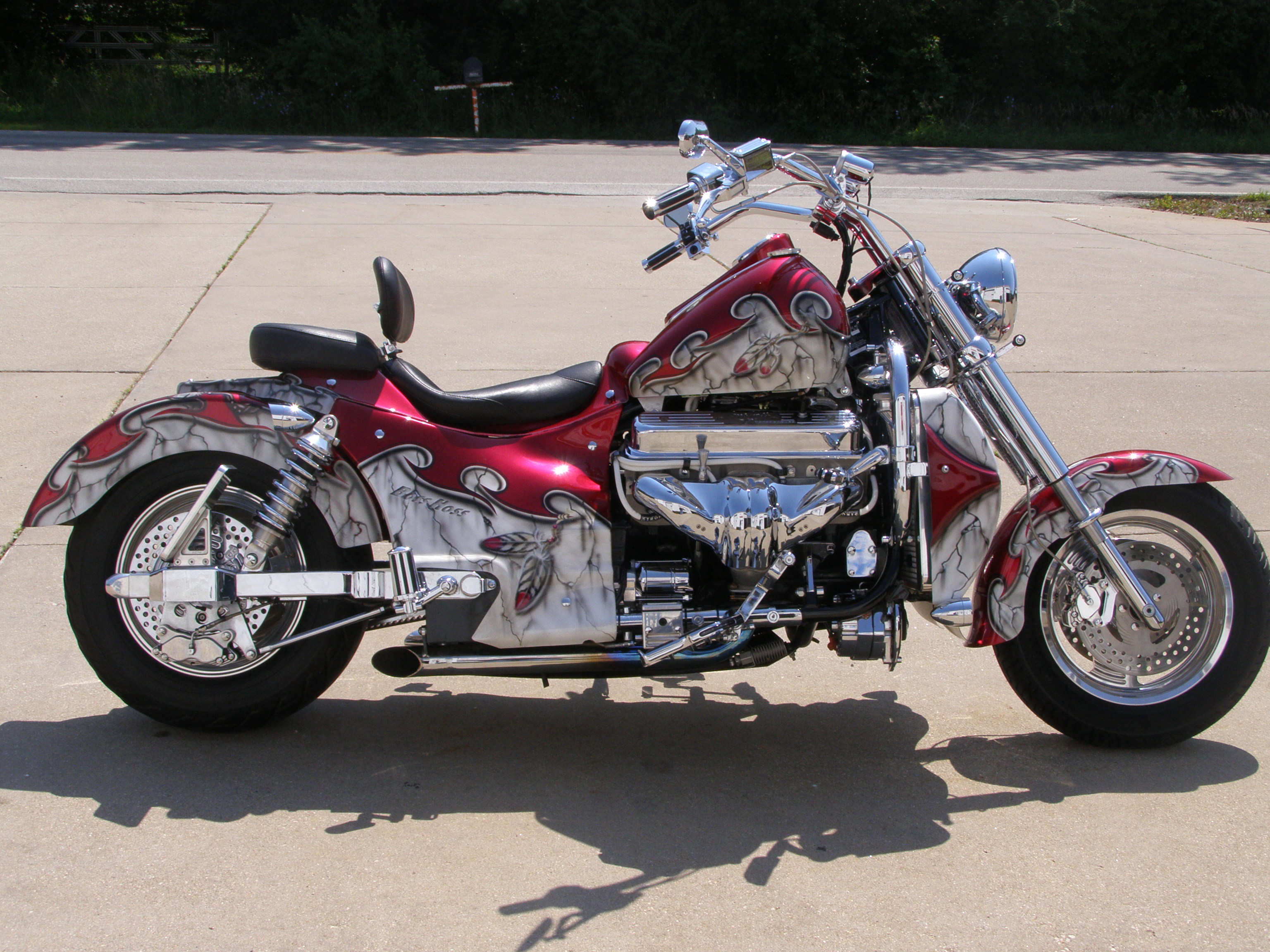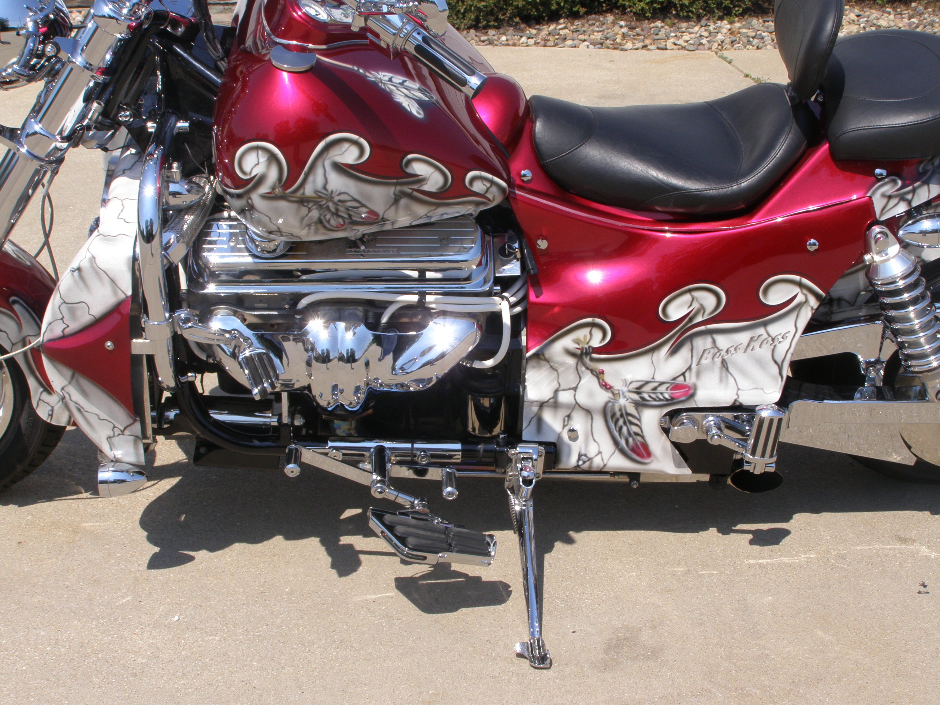 YEAR: 2002 MAKE: BOSS HOSS MODEL: BHC-3 ENGINE: 350CI / 385HP COLOR:_CANDY BRANDYWINE & PEARL WHITE (TRIBAL THEME) MILES: 10,081 PRICE: $28,900.00